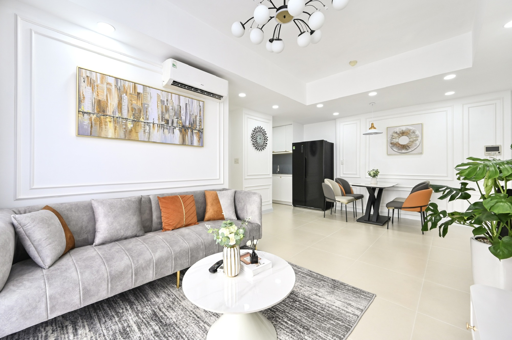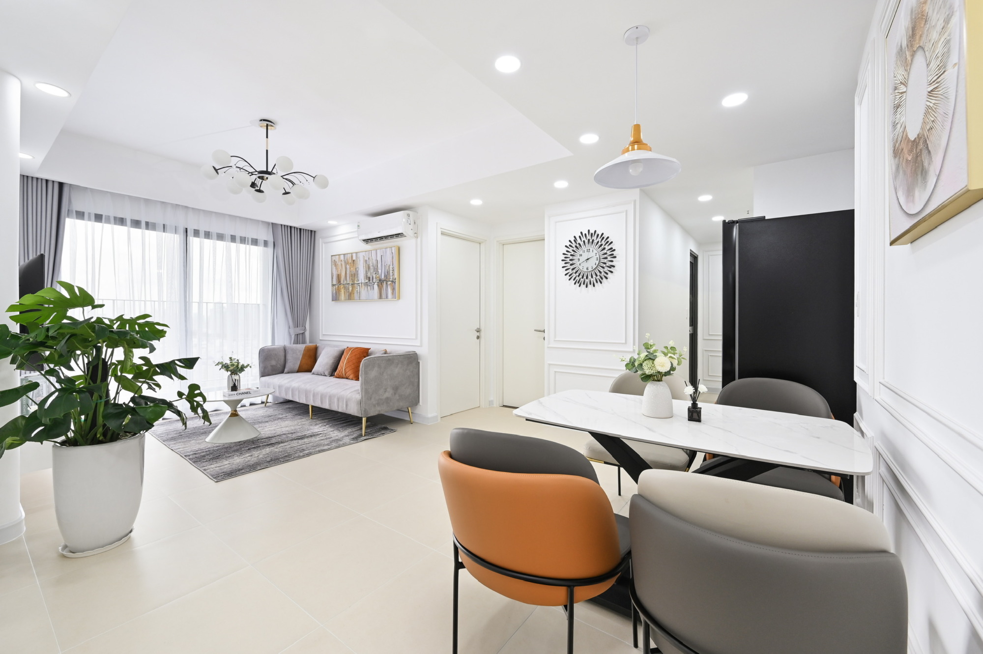 • Bright and airy living/dining area with modern design