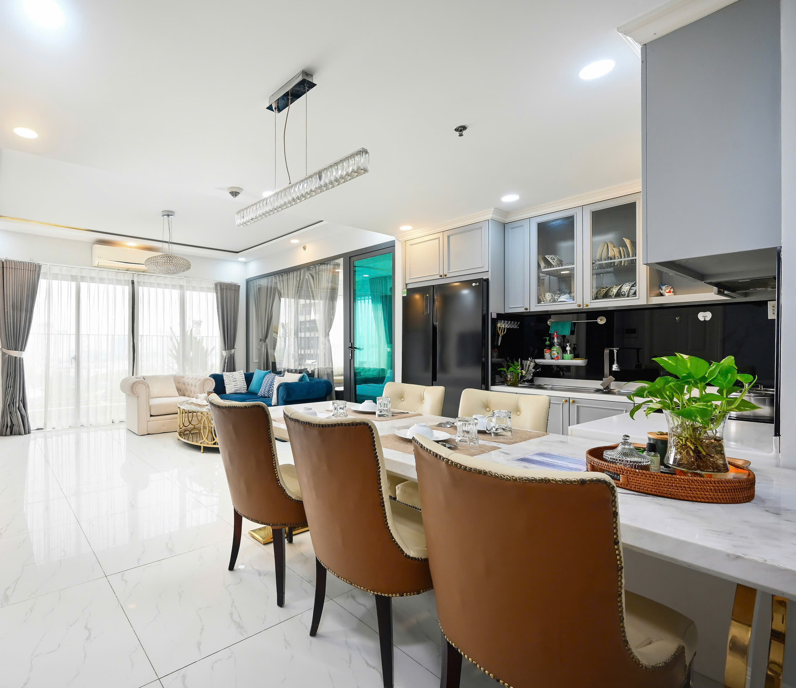 • Bright and airy living/dining area with modern design